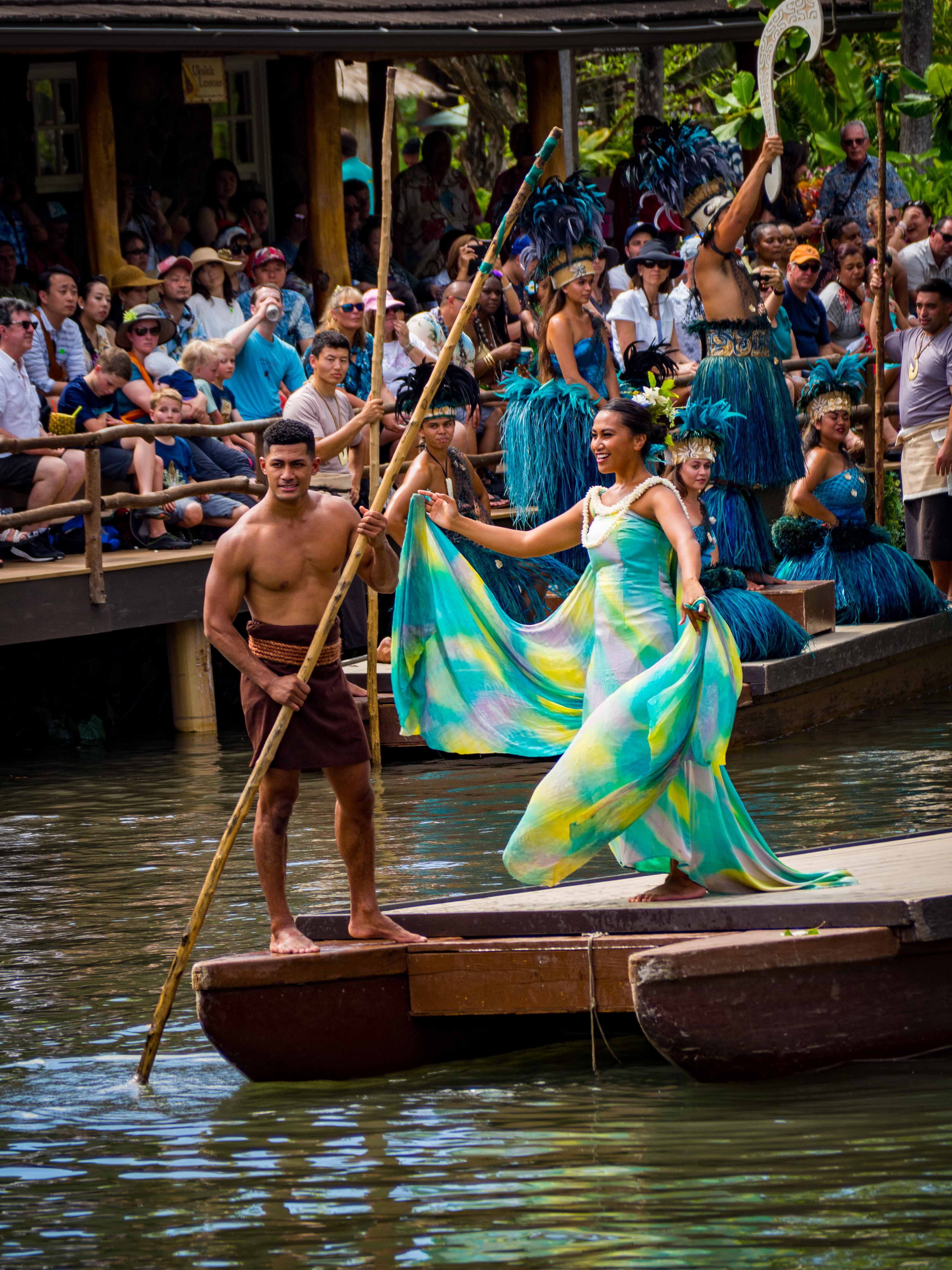 Godzinę drogi od Honolulu znajduje się drugi z najważniejszych turystycznych punktów wyspy – Pacific Cultural Center. Debatowaliśmy trochę nad sensownością wizyty w tym miejscu – wejściówka na poziomie 65 USD trochę odstrasza. W zamian organizatorzy obiecują jednak poznanie tajników kultury polinezyjskiej, do której należą m.in. Hawajczycy. Na miejsce dotarliśmy na czas ckliwego “show”, w którym aktorzy pływali na kanu na sztucznym kanale śpiewając przy tym polinezyjskie piosenki, grając na bębnach, ukulele i nie wiadomo na czym tam jeszcze. Byliśmy przekonani, że nadzialiśmy się na największą tandetę, potem już było jednak tylko lepiej.