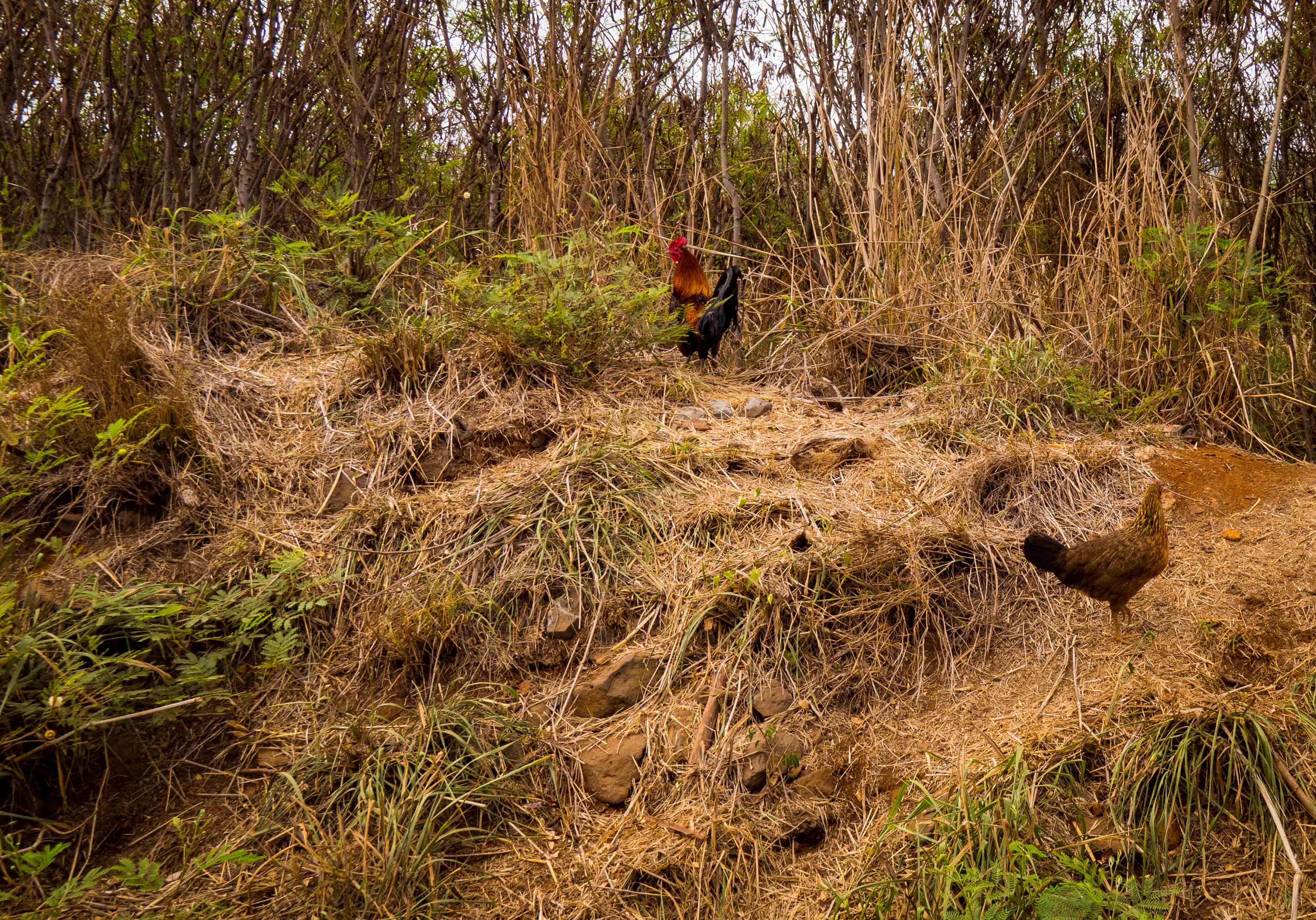 To czym jednak zapamiętamy Hawaje to naprawdę spektakularne zachody Słońca, chyba jedne z najlepszych jakie mieliśmy okazję oglądać do tej pory. Obok zachodów w pamięci w naszej pamięci pozostanie też… pianie koguta (lub też dziesiątek tych skurczybyków). Z nieznanych nam powodów na Hawajach występuje OGROMNA populacja dzikich kur. Pianie koguta jest nieodłącznym elementem tutejszej podróży – słychać je od świtu aż do zmierzchu, niezależnie czy jesteśmy w mieście czy na łonie przyrody. Istnienie tego ptactwa w takiej liczbie to chyba kolejny przykład, że bezdomnym żyje się tu wcale nienajgorzej. 😉