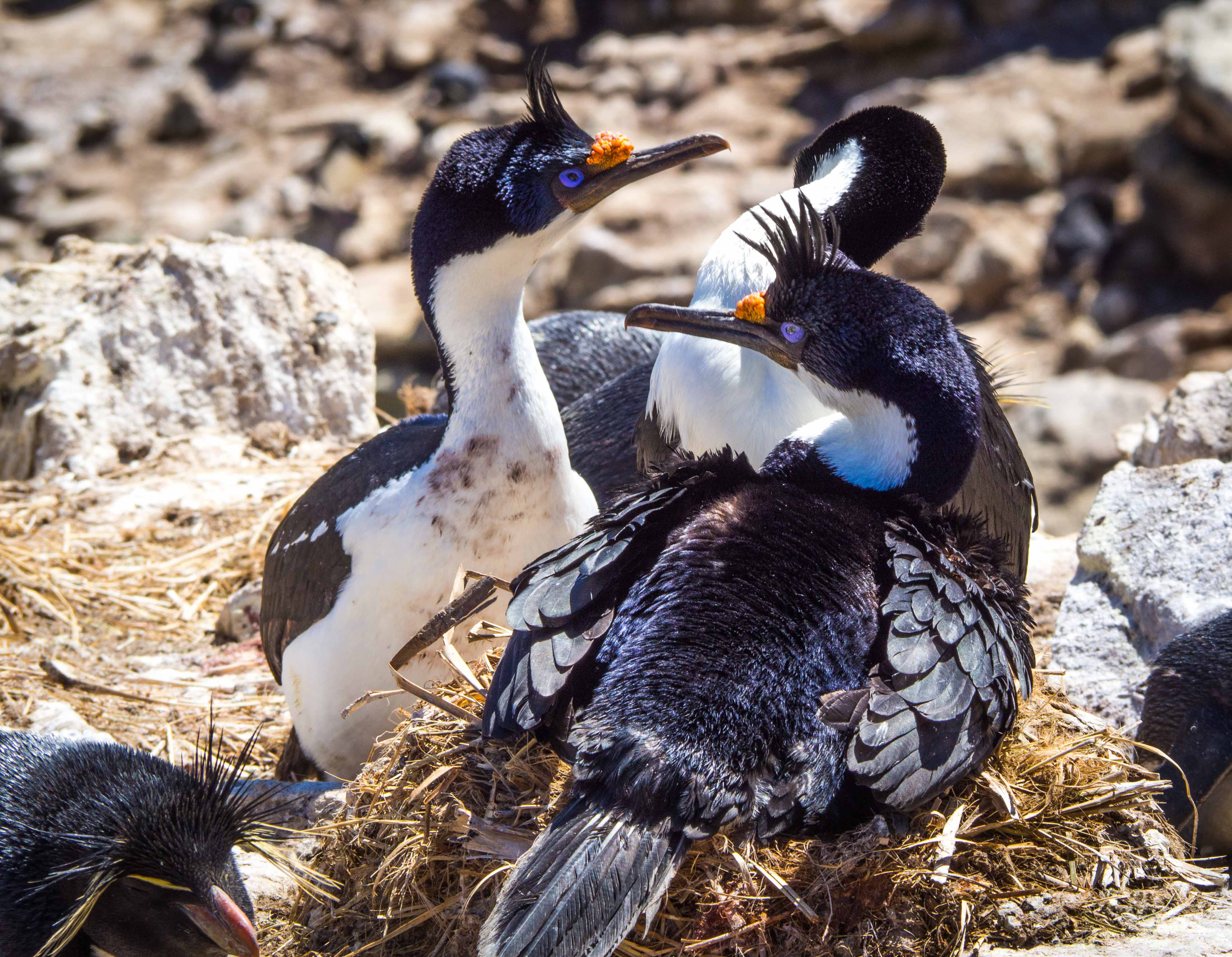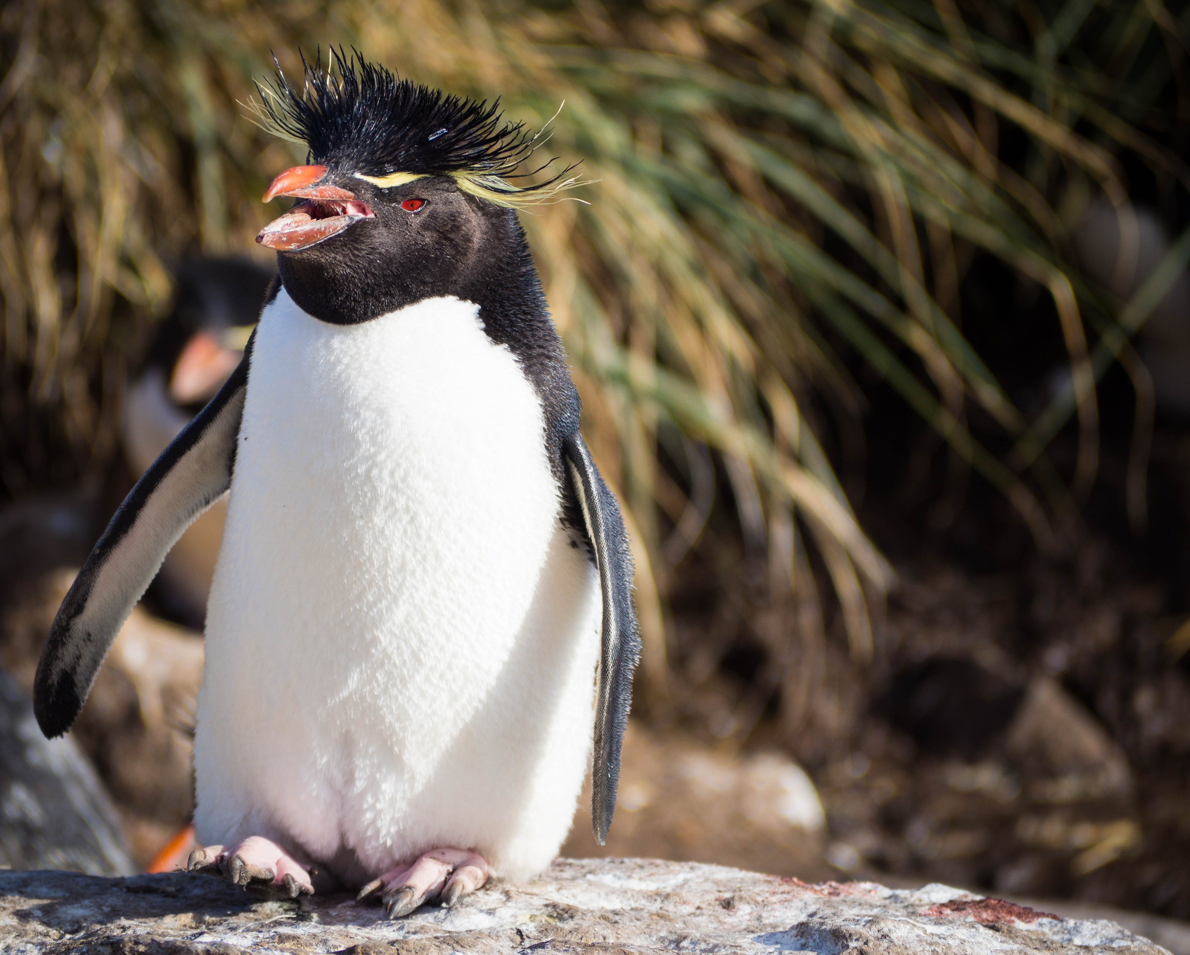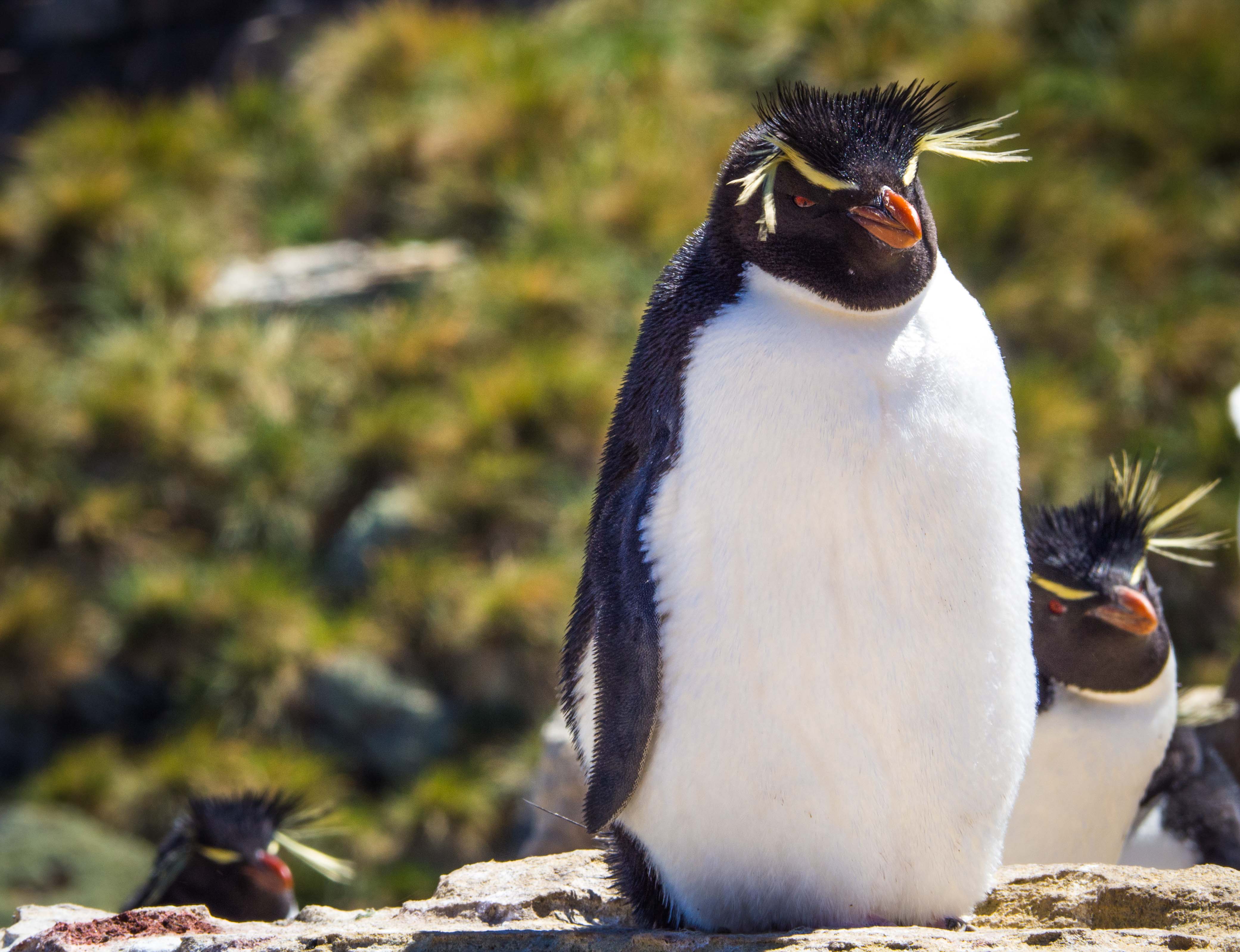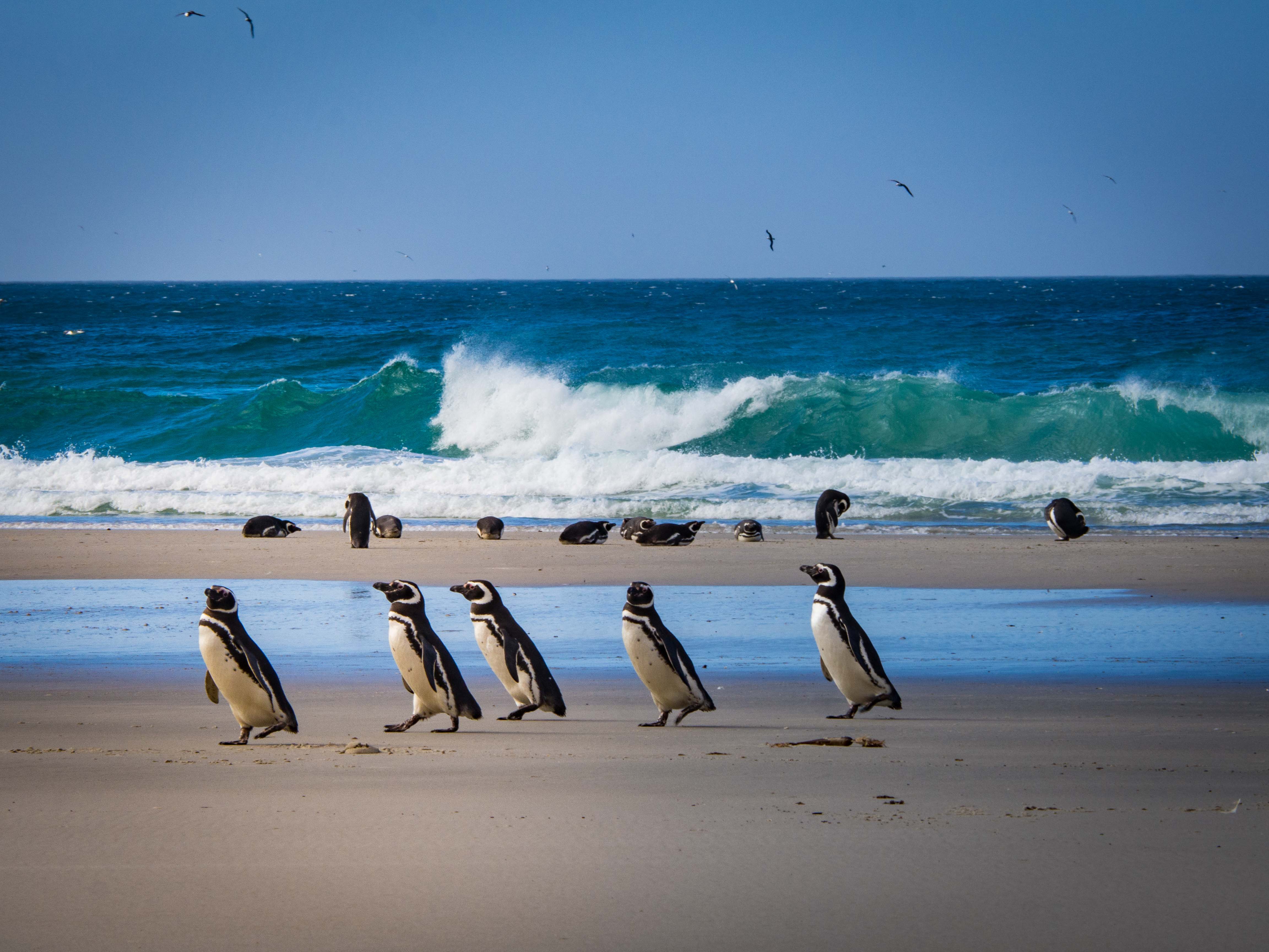 Budzimy się z widokiem na Falklandy. Pierwszym przystankiem jest wysepka New Island. W odróżnieniu od reszty grupy, która biegnie na jeden z klifów, gdzie mieści się siedlisko pingwinów skalnych zaraz po zejściu kierujemy się na punkt widokowy. Chcemy ich przechytrzyć i mieć pingwiny w całości dla siebie, w momencie gdy przyjdzie ich pora na wizytę na wzgórzu.