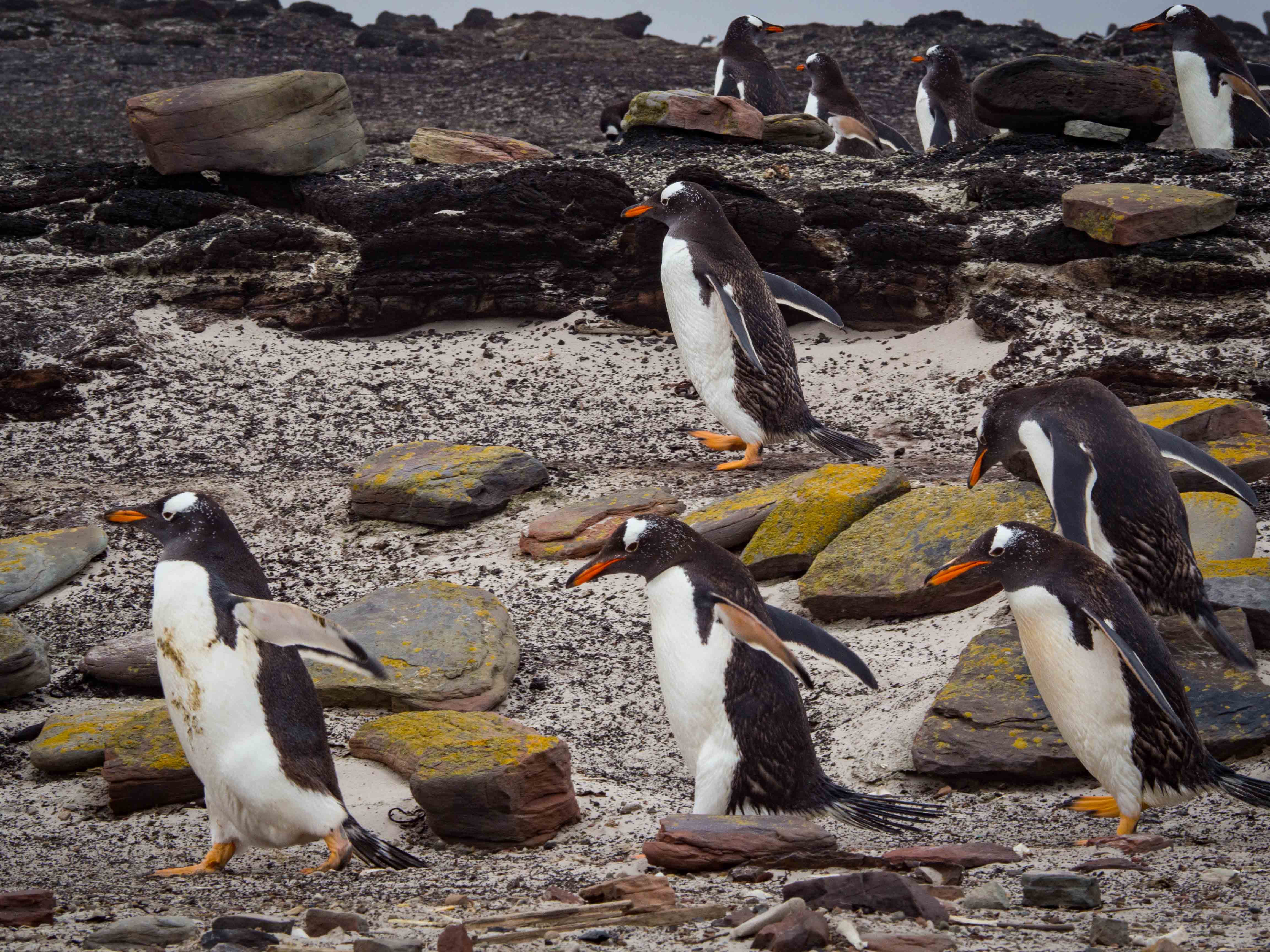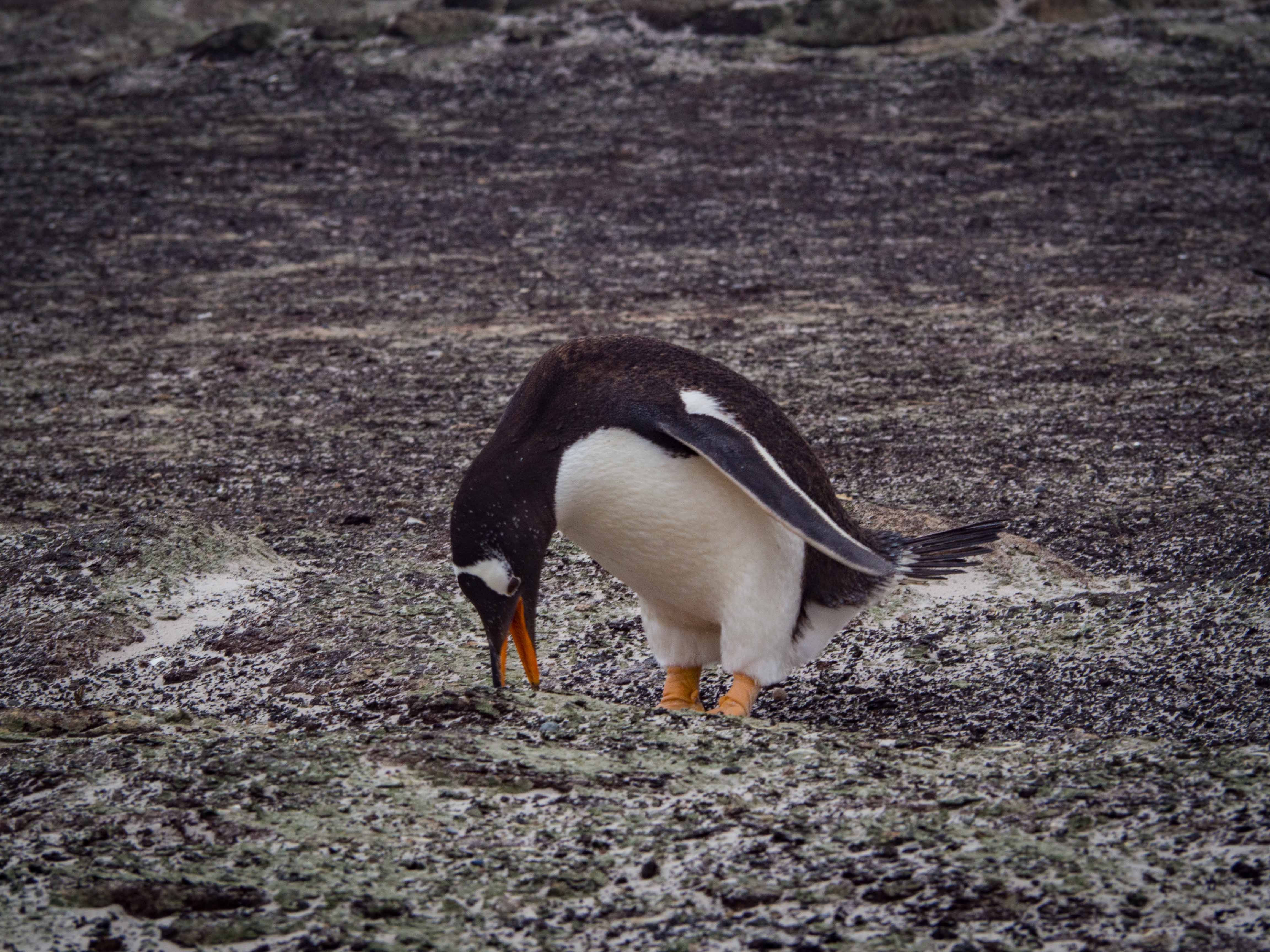 Od jednego z przewodników dowiadujemy się, że po drugiej stronie wyspy na Leopard Beach dostrzeżono pingwiny białobrewe (ang. gentoo penguins). Pędzimy ile sił w nogach. Po dotarciu na plażę okazuje się, że w trakcie wylęgu nie możemy się do nich zbliżyć, pozostaje nam jedynie oglądanie ich z daleka przez obiektyw naszego aparatu.