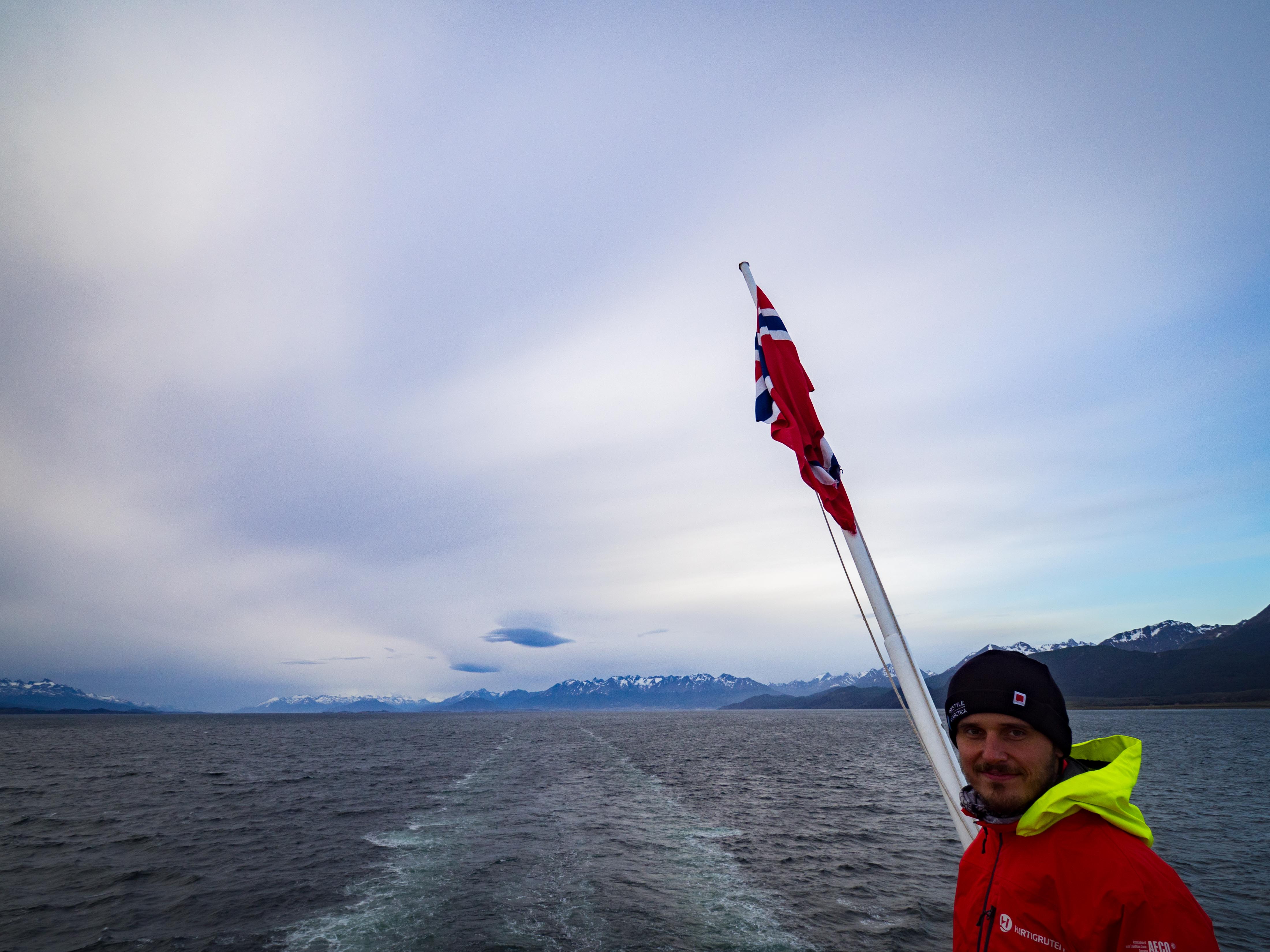 Pomimo niewielkich rozmiarów Ushuaia robi na nas spore wrażenie. Morze u stóp miasta i ośnieżone szczyty majaczące w tle – krajobraz jest przepiękny. W czasie wycieczki rozdzielamy się – Monika jedzie bezpośrednio na statek, mnie czeka jeszcze szybka wizyta w biurze agencji turystycznej w której wykupiliśmy rejs. Brakuje nam kilku ciepłych rzeczy na Antarktydę, które naprędce wypożyczam i biegnę do portu. Razem z nami najbliższe 3 tygodnie na statku MS Fram spędzi jeszcze 190 turystów, stąd check in trwa dobre kilkadziesiąt minut.