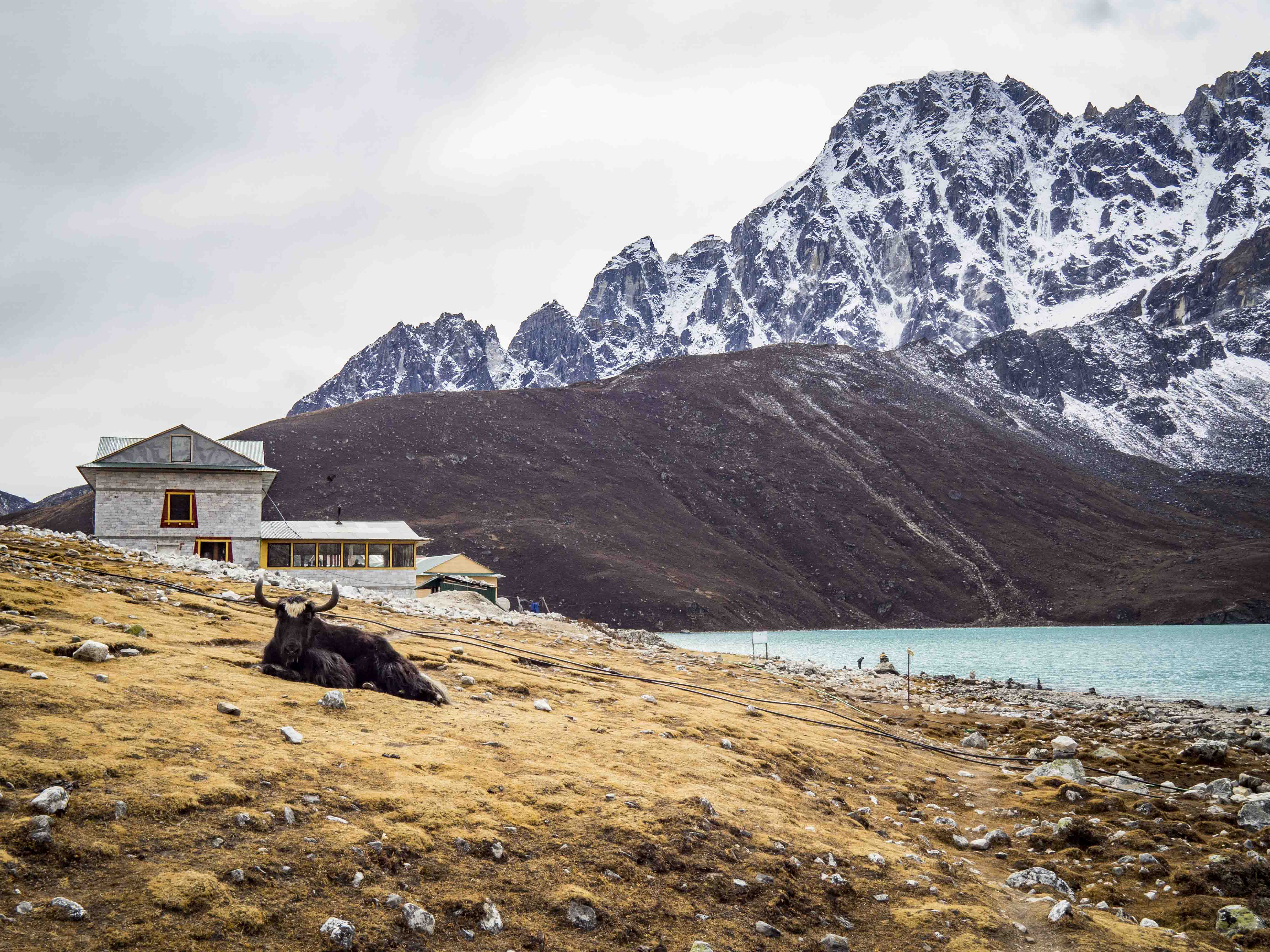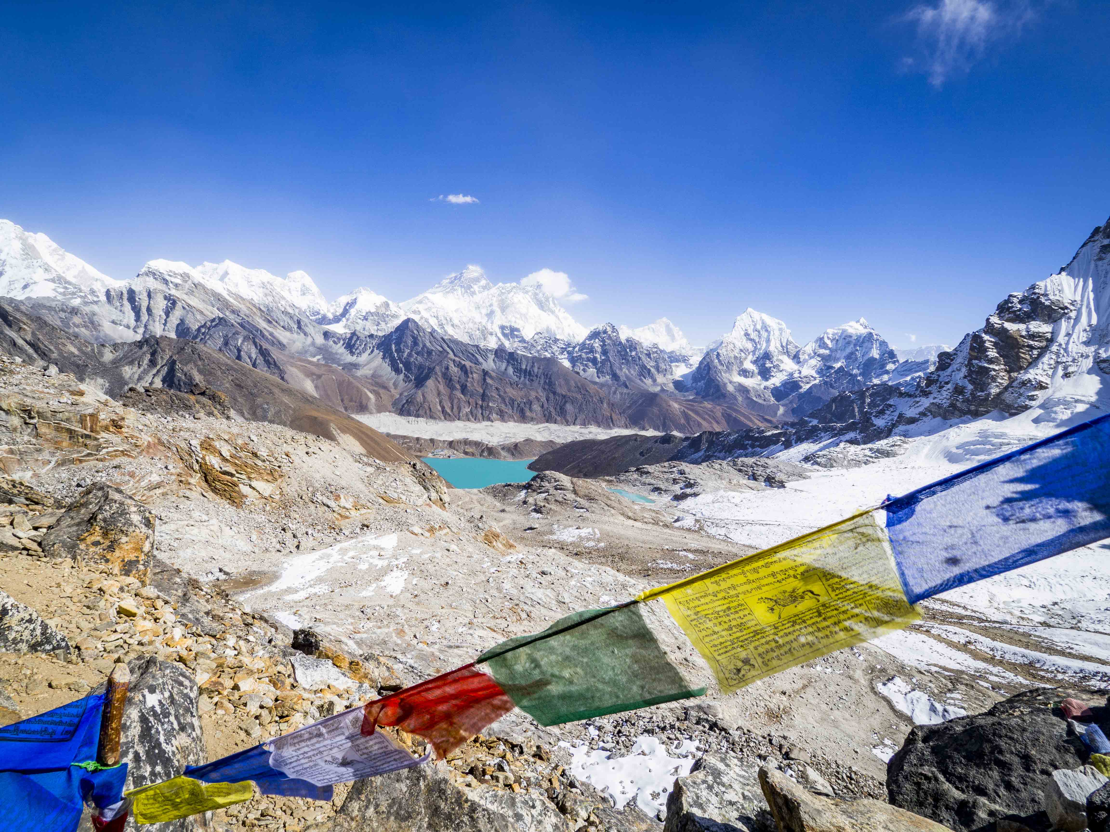 Kolejny dzień spędzony w Gokyo. Monika zostaje kurować przeziębienie w hostelu, ja ruszam na okoliczny szczyt – Gokyo Ri. Część osób zaczyna swój trekking 3 przełęczy właśnie od tej strony – to najpewniej oni zostają za mną daleko w tyle. Z dobrą aklimatyzacją to krótka, przyjemna przechadzka – szczyt oferuje dość zacne widoki – Cho Oyu (8021 m.n.p.m) i dwa siedmiotysięczniki Ngozumpa Kang, jak również Machhermo Peak znajdujący się za jeziorem Gokyo.