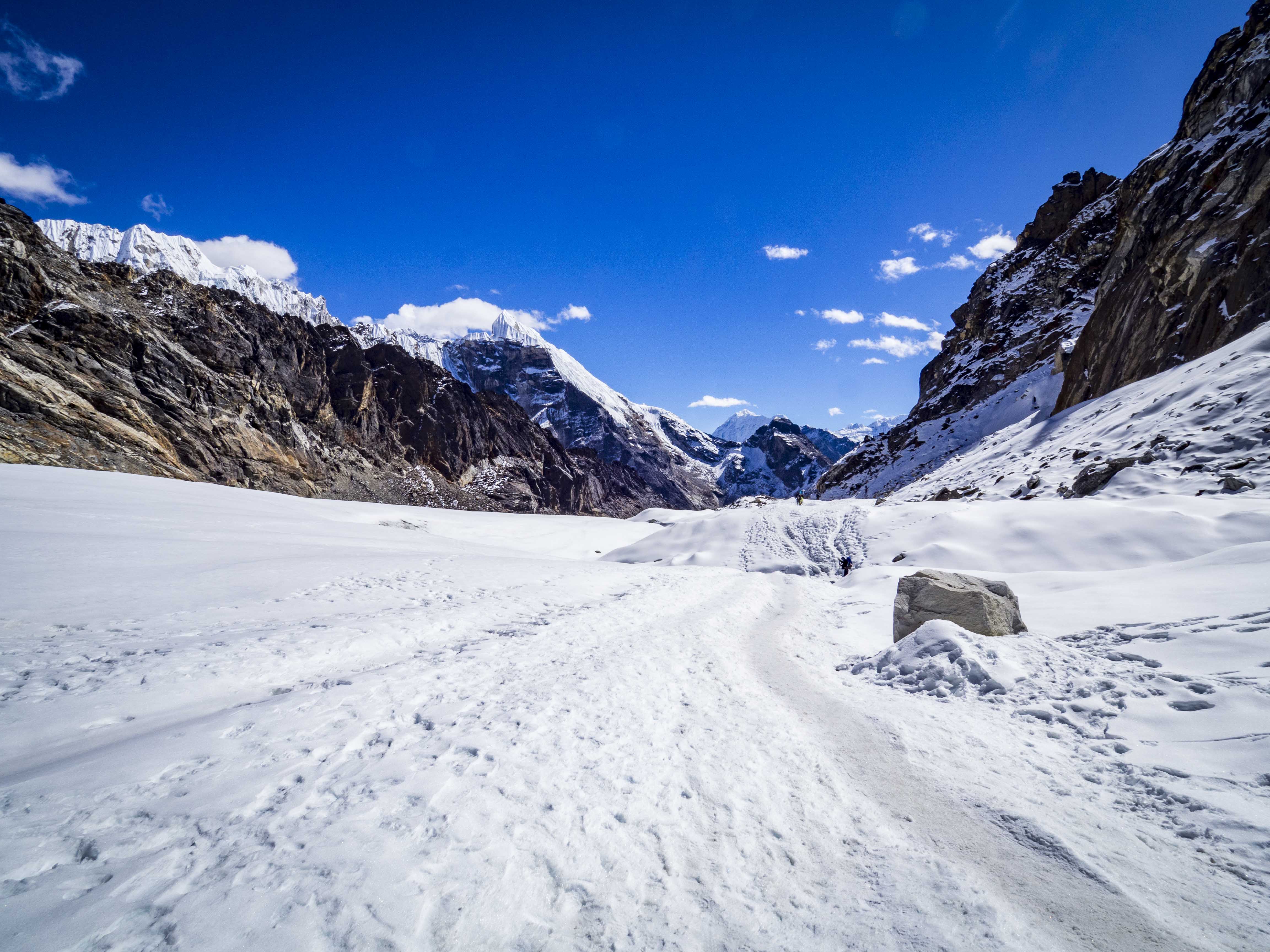 ⁃ na przełomie października i listopada, kiedy przemierzaliśmy szlak mikrokolce okazały się pomocne jedynie na półtorakilometrowym odcinku przed przełęczą Cho La,