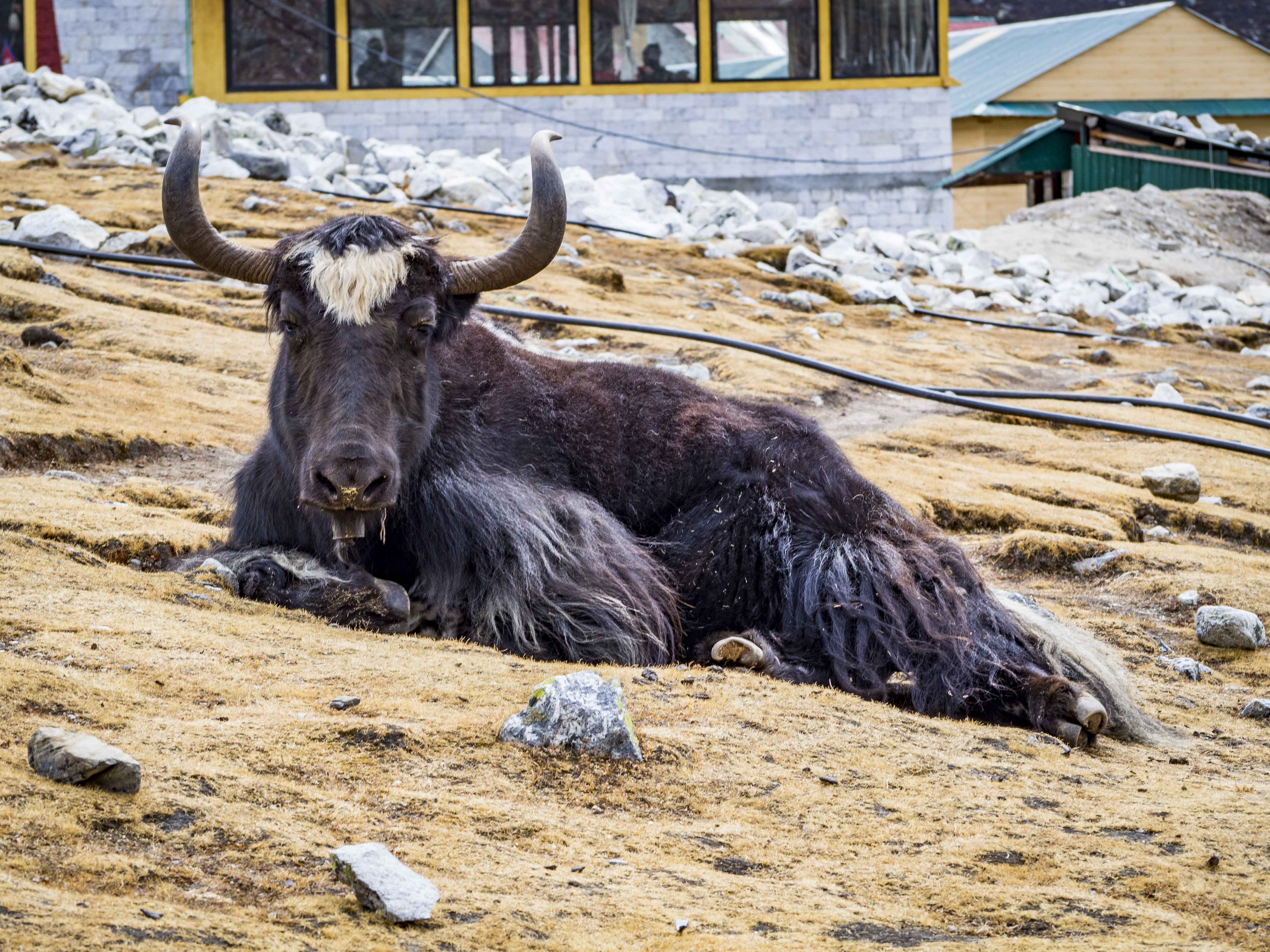 Górska panorama jest na tyle wyjątkowa, że decydujemy się na dłuższy przystanek na jednej ze skał z widokiem na Everest, co w komplecie z przygrzewającym słońcem kończy się półgodzinną drzemką. 😉 Jest już 15 i zbieramy się w okrężną drogę powrotną do Namche. Mijamy wioskę Khumjung, zdominowaną najwyraźniej przez jednego architekta/budowniczych/dostawców materiałów. Większość budynków na pierwszy rzut oka jest niemal identyczna, biada temu kto wraca do domu po pijaku 😉 .